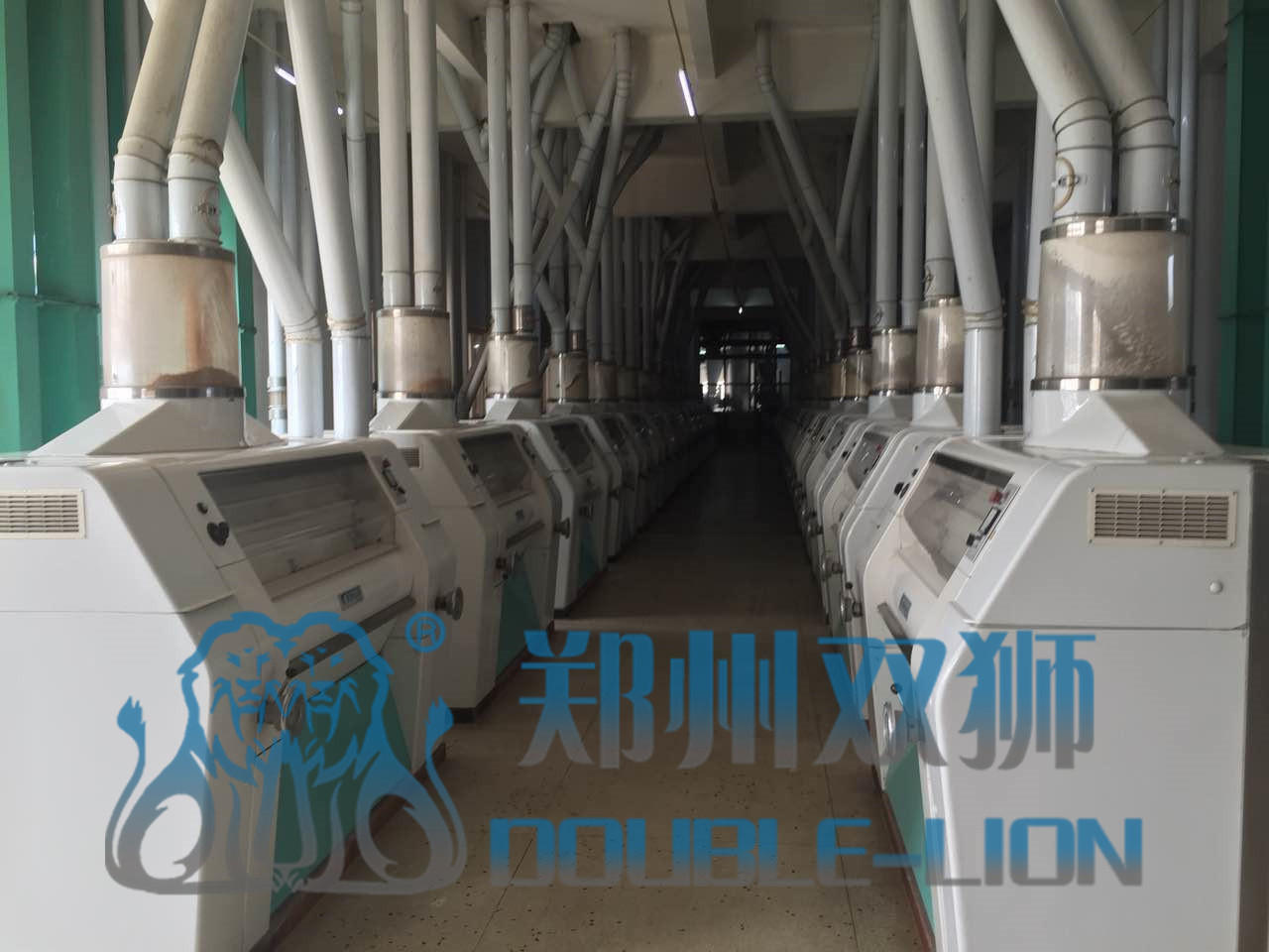 日产1000吨面粉机加工设备在面粉机的选用和分配上,还是比较合理,磨粉机可适应较大的产量,剥刮率也不会受到影响;采用八仓式高方平筛,筛理面积较大,减少车间的占地面积,又节约了资金,一台六分式高方筛只用做面粉检查筛使用。